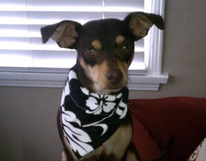 Dizzy is a two-year-old whirlwind of fun. His parents say that they know he is part Chihuahua because they met his mother. The rest of him, however, is a mystery. Miniature Pinscher? Manchester Terrier? They aren’t sure. What they do know is that he is 100% fun.