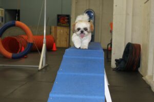 Snooki is the puppy of two champion Shih Tzus from the midwest, but, as the runt of her litter, being a show dog wasn’t in the stars. Instead, Snooki went to live with her adoptive parents, Mike and Lisa, in Manhattan Beach. Snooki is now eight months old and has already conquered many feats, including her first camping trip and several plane rides. Snooki’s favorite activity is definitely agililty — she can’t seem to get enough of it! Sometimes she can even be found sleeping on her make-shift “table” at home.